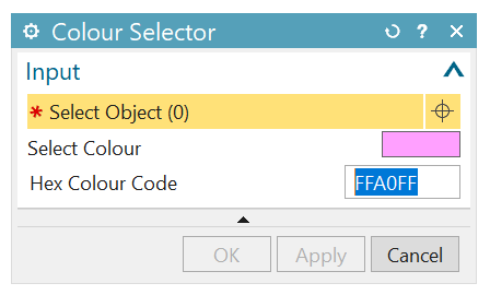 Opens a conventional (not Siemens NX native) colour picker dialog or by specifying the hex code for the colour you want.