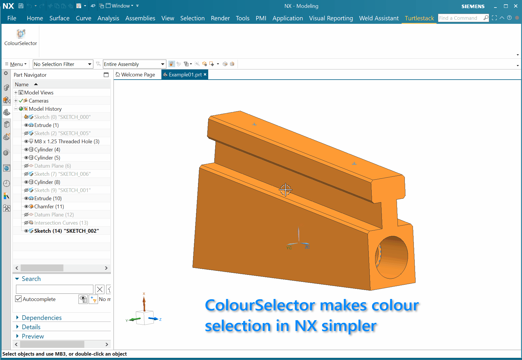 Opens a conventional (not Siemens NX native) colour picker dialog or by specifying the hex code for the colour you want.